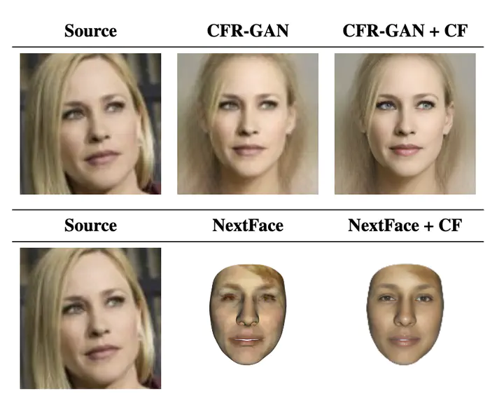 We find that naive application of these techniques substantially degrades facial recognition accuracy. However, we also find that selective application of CFR-GAN combined with CodeFormer yields meaningful improvements.
